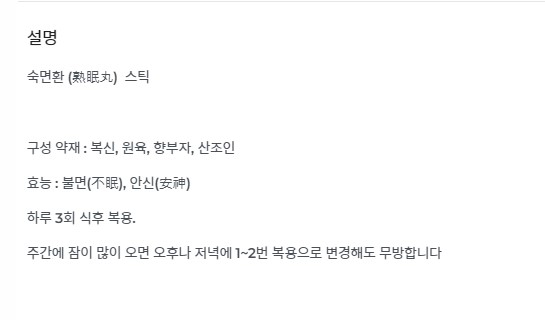 불면증에 처방하는 것으로 잠이 쉽게 들지 않는 증상이나, 자주 깨면서, 깼다가 다시 잠이 들지 못하는 증상 등에 복용하며, 정신을 안정시키는 효과가 있습니다.
